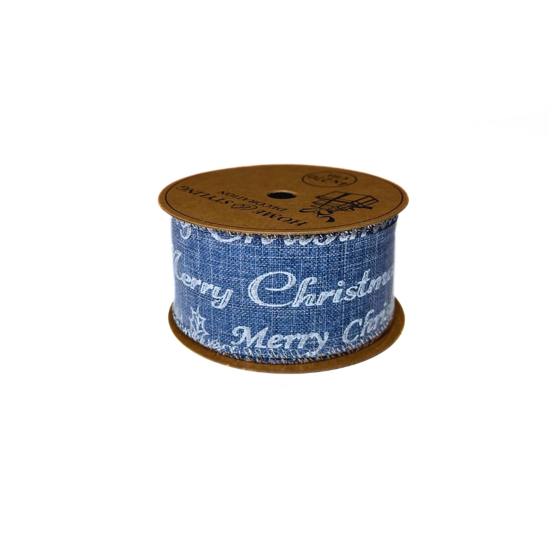 Різдвяна стрічка, 4х270 см (синій з блискітками)